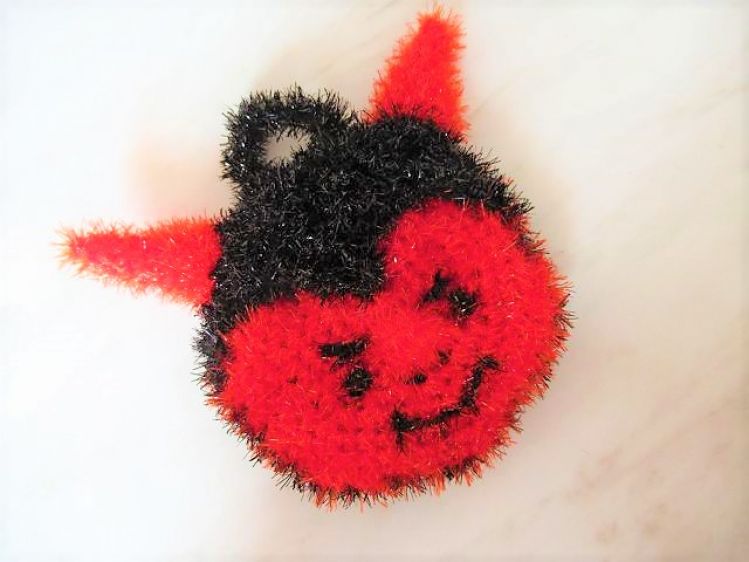 Hast du einen Putzteufel zu Hause? Diesen brauchst du unbedingt! Er wird aus dem Schwammgarn Creatuve Bubble von Rico gehäkelt. Dafür genügen ein paar reste in Rot und Schwarz. Da sich dieses Garn bei 60 Grad waschen lässt und schnell trocknet, hast du immer einen hygienisch sauberen Spülschwamm einsatzbereit.