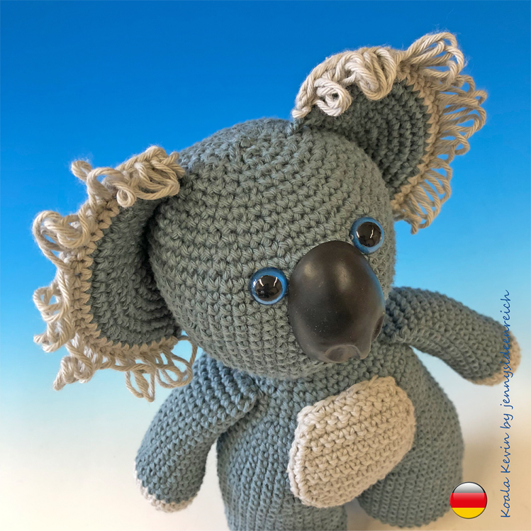 Mit dieser Anleitung ist es euch möglich euren eigenen Amigurumi Koalabären zu häkeln. Kevin wird bei Nadelstärke 2-3 und der passenden Wolle ca. 30 cm groß.