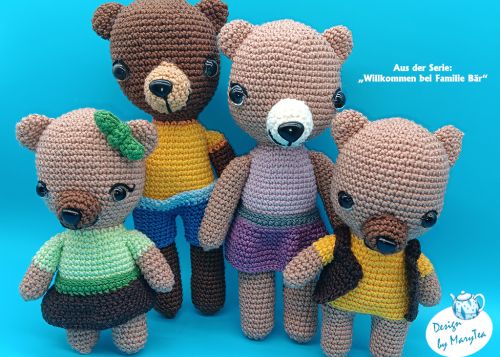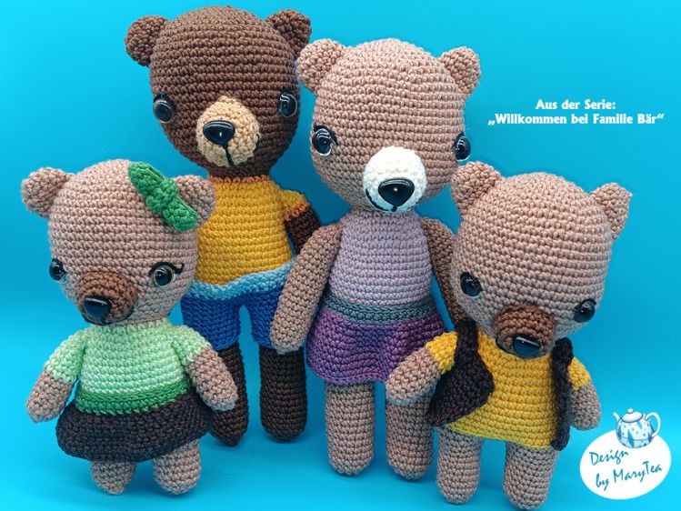 Willkommen bei Famiile Bär - darf ich vorstellen? Papa und Mama Bär freuen sich zusammen mit ihren Zwillingen Lotti und Bruno darauf, nachgehäkelt zu werden und im besten Falle Kinderaugen zum Strahlen zu bringen.