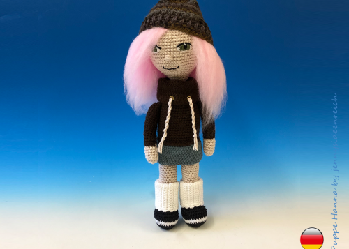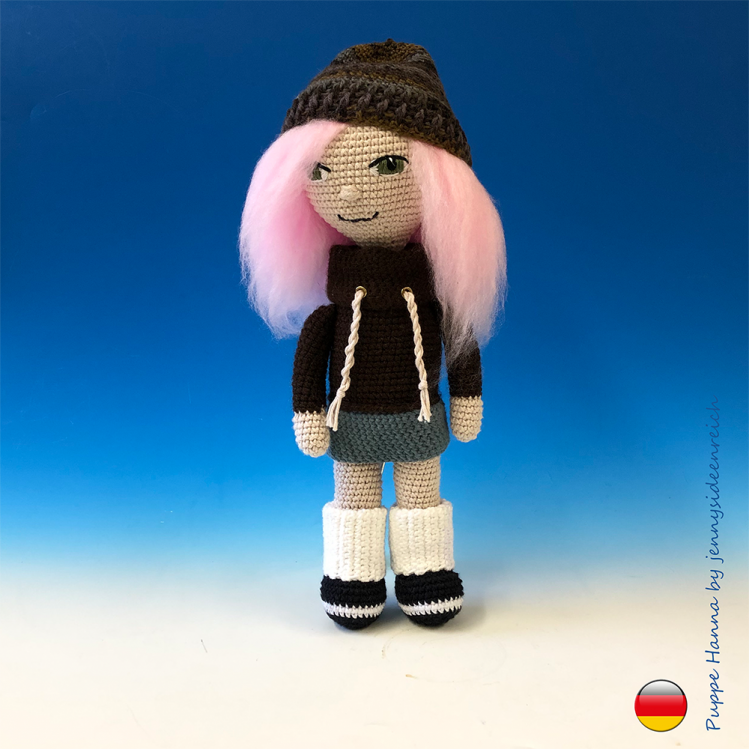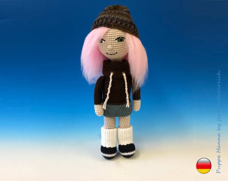 Ihr könnt hier die komplett ausformulierte Häkelanleitung zur Puppe Hanna erwerben. Sie ist 18 Seiten lang und besteht aus Texten und Bildern zu allen Einzelteilen.