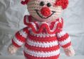 Benötigtes Material: rote, hautfarbene und beliebig bunte Wolle, Häkelnadel, schwarze Halbperlen, Knöpfe, Schleifenband und Füllwatte. Die Clowns werden mit Nadelstärke 3 und Catania-Baumwolle stehend etwa 12 cm groß.