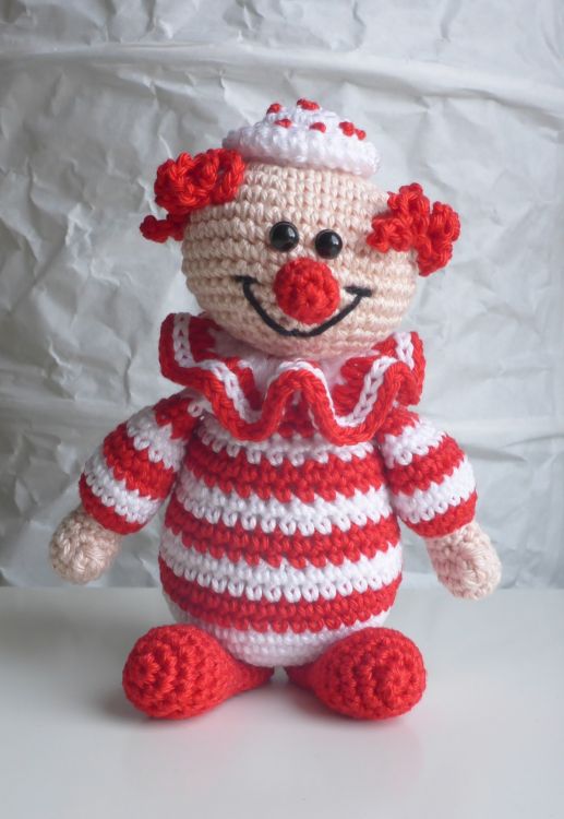 Angeboten wird hier eine ausführliche und gut bebilderte Häkelanleitung für Piccolino und Piccolina, nicht die fertigen Clowns. Die Anleitung umfaßt 12 Seiten.