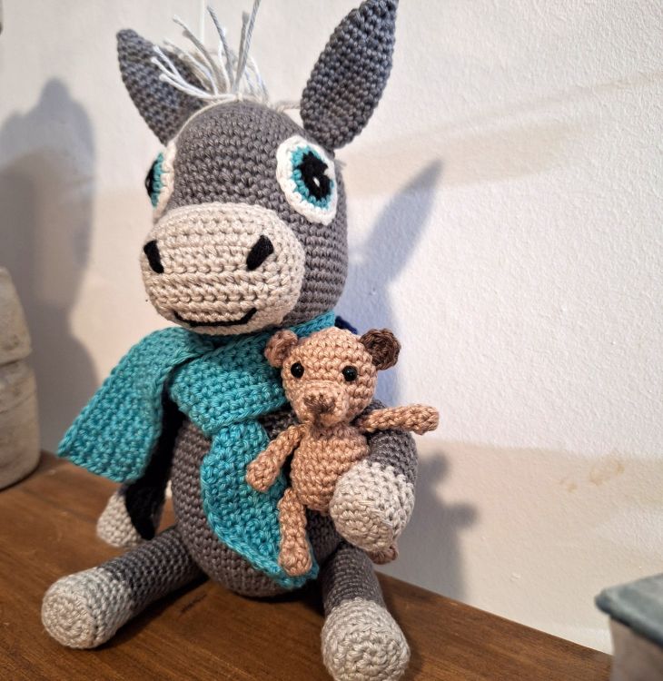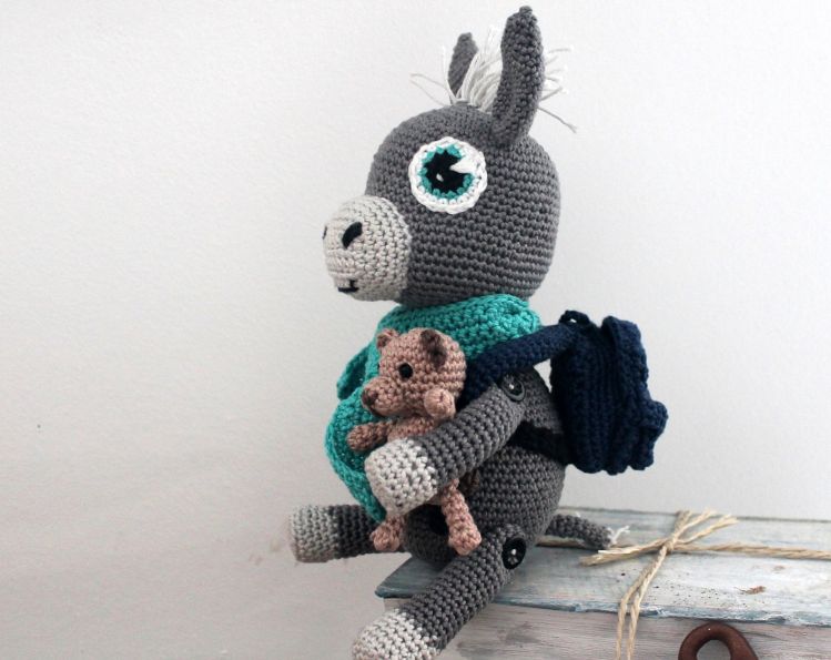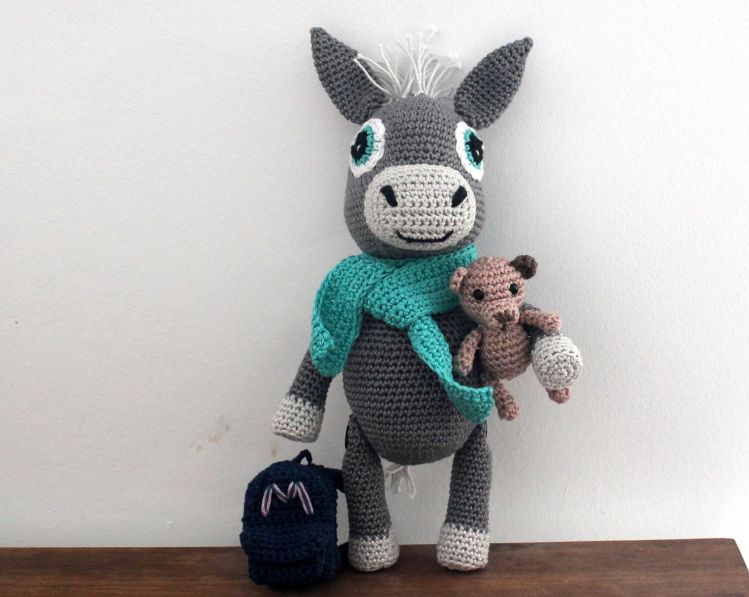 Ebook, gehäkelt, Anleitung, Häkelanleitung, Tier, Esel, Kuscheltier, Schmusetier, Kumpel, Teddy, Teddybär, Amigurumi, Masche-fuer-Masche,