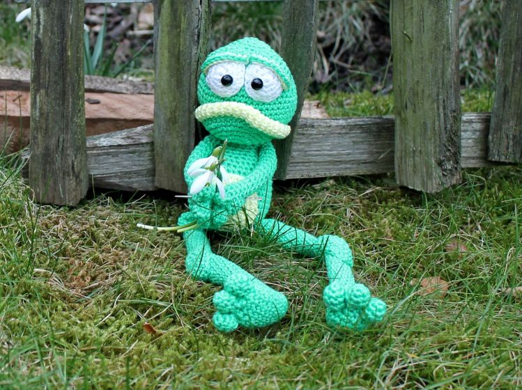 Fred war früher der Wetterfrosch und da er gerade nicht so genau weiß, was er als nächstes machen will, schaut er immer ein wenig mürrisch drein. Er hat es mit Yoga versucht, sich als Osterhase beworben, oder einfach als Kantenhocken. Er überlegt aber noch immer...