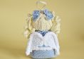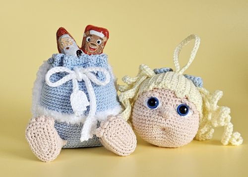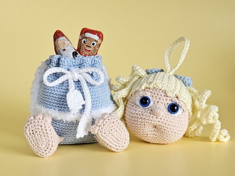 Die Füßchen schauen frech unten aus dem Säckchen heraus, und hinten schmücken hübsche Engelsflügel den Beutel. Ein Band mit kleinen Flügelchen dient als Verschluss.