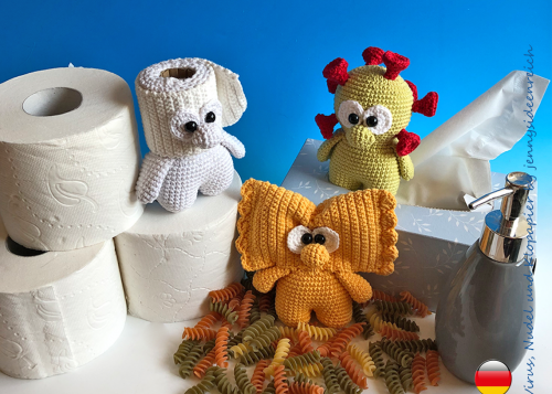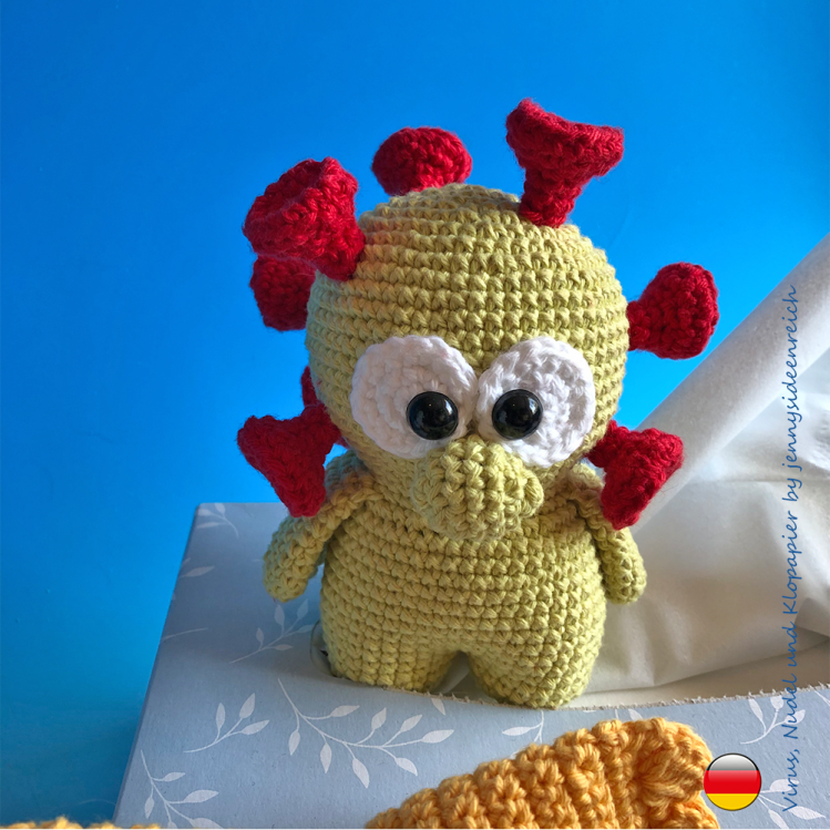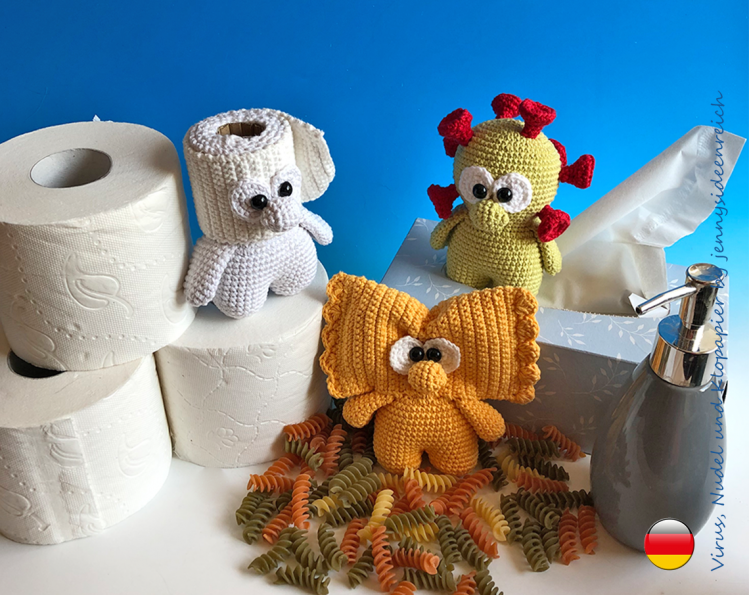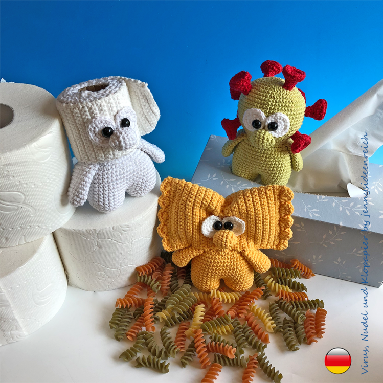 Ihr könnt hier die komplett ausformulierte Häkelanleitung zum #wirbleibenzuhase-Trio erwerben. Sie ist 9 Seiten lang und besteht aus Texten und Bildern zu allen Einzelteilen.