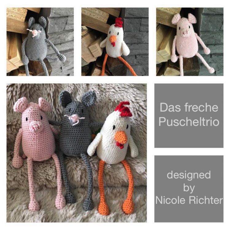 © Diese Anleitung ist urheberrechtlich geschützt! Die Urheberrechte liegen bei Nicole Richter von Puscheltiere. Das Tauschen, Verkaufen und Veröffentlichen der Anleitung sowie das Übersetzen in andere Sprachen ist nicht gestattet. Der Verkauf der fertigen Figuren, die nach dieser Anleitung entstanden sind, ist erlaubt. Bitte dabei immer angeben: Hergestellt nach der Anleitung „Das freche PuschelTrio“ von Puscheltiere.