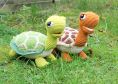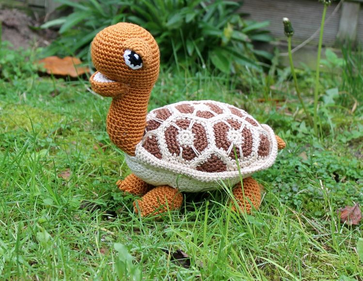 Die Schildkröten werden fertig gehäkelt 25 cm hoch und 20 cm lang.