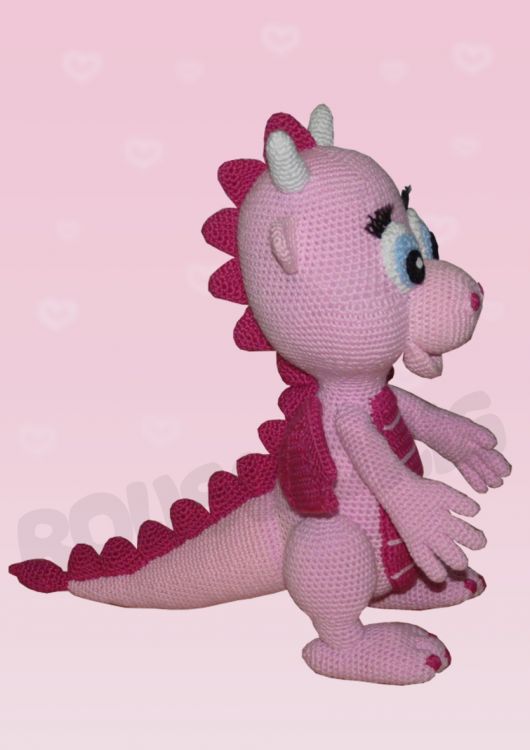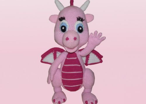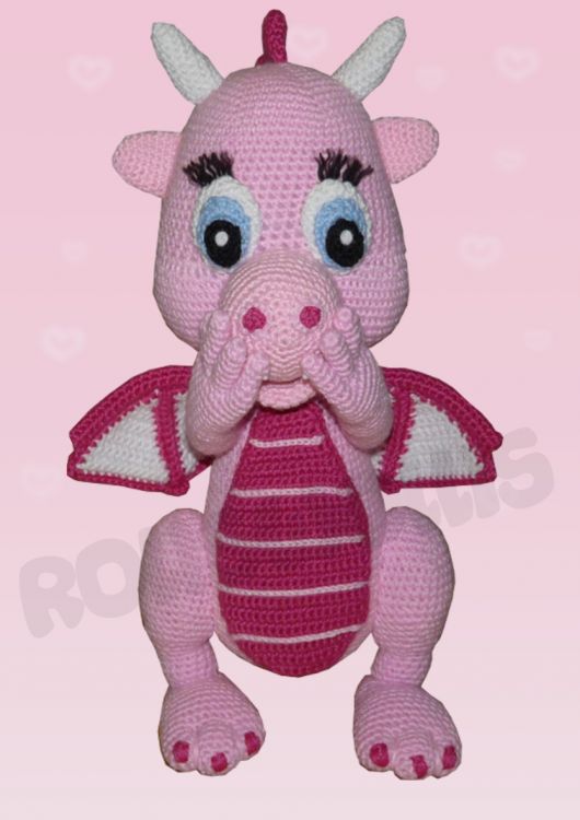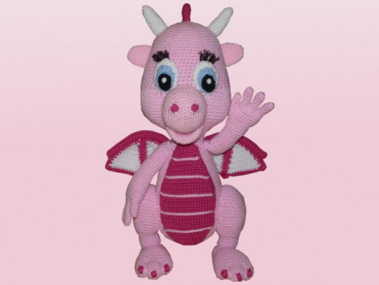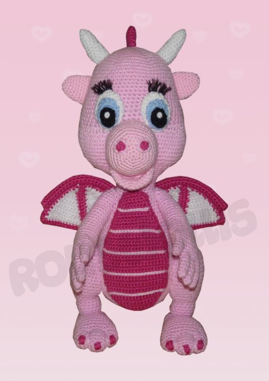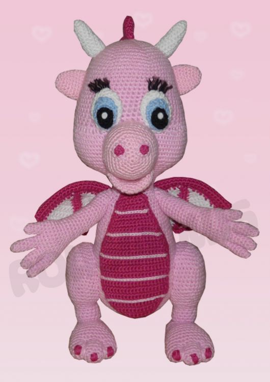Taja ist eine süsse rosa Drachendame. Sie speiht kein Feuer, sie ist absolut handzahm:) Durch ihre Größe wirkt sie sehr imposant, aber sie ist ein absoluter Kuscheldrache. Ich hoffe Ihr schließt sie so sehr ins Herz wie ich und habt Lust die Drachendame nach zu häkeln.