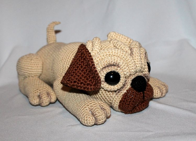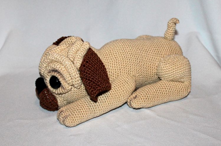 The crochet dog may be sold, if you add the suitable link and a note: "Crochet after an instruction of masche-fuer-masche!".