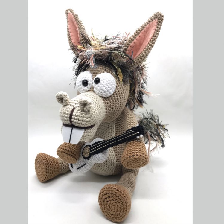 Pablo der Rocker-Esel, er liebt seine Gitarre und Musik
