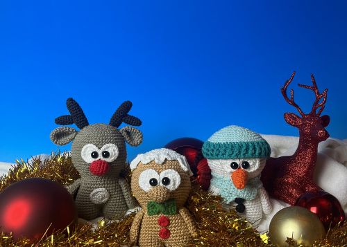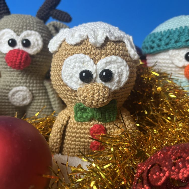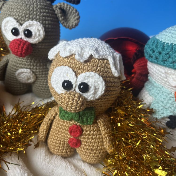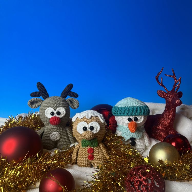 Winter Trio Lebkuchenmann, Schneemann, Rentier Amigurumi