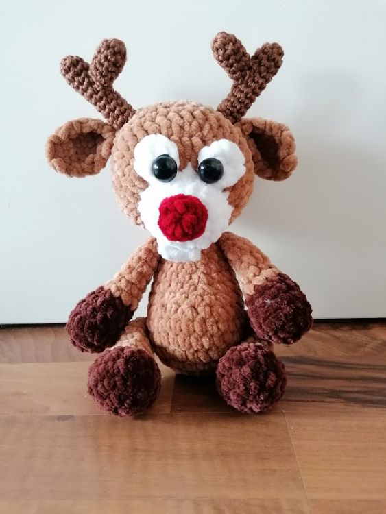 Es handelt sich um eine 4 Seitige Schriftliche Anleitung zum Nacharbeiten des Baby Rentiers.