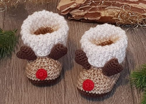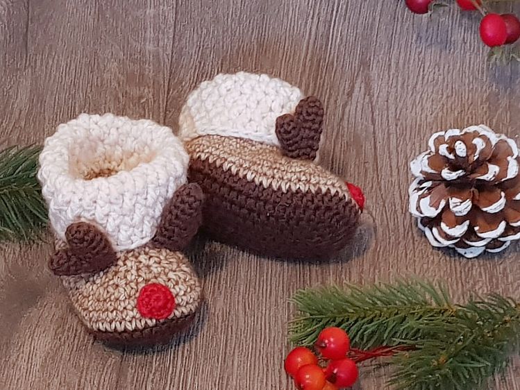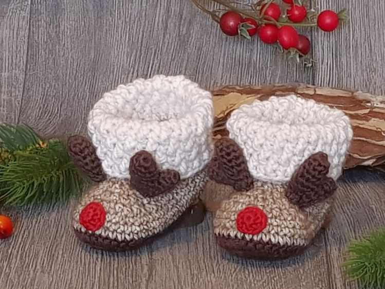 Diese niedlichen Babystiefel mit Rentier-Geweih und roter Nase sind gerade in der kalten Jahreszeit ein liebevolles Geschenk für werdende oder frischgebackene Eltern sowie auch ein tolles Accessoire für weihnachtliche Babyfotos.