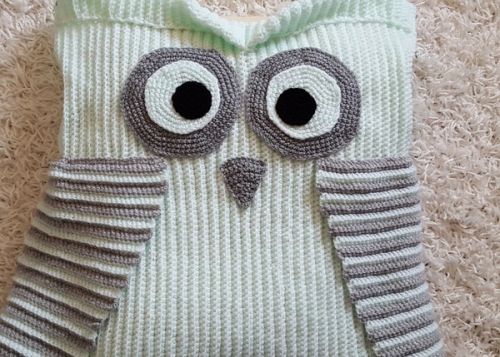 Häkelanleitung für einen Fußsack Eule für Babys und Kleinkinder. Babys kann man schön im Kinderwagen einkuscheln. Bei Kleinkindern reicht der Sack bis zur Achsel. Breite: 40 cm Länge: 54 cm Die Anleitung hat 12 Seiten. Anfängerfreundlich! Ohne Abkürzungen geschrieben und mit vielen Bildern. Ideal für Frühling und kühlere Sommertage. Sie benötigen: 400g Big Wucht mint oder ähnliches Garn für Nadelstärke 4 100g Big Wucht hellgrau Rest Schwarz 2 weiße Reißverschlüsse 20 cm Häkelnadel Nr. 4 Meine Anleitungen dürfen nicht weiter verkauft werden.