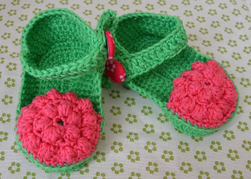 Häkelanleitung Gr. 14-18 "Himbeerschuhe" 0-1 Jahr