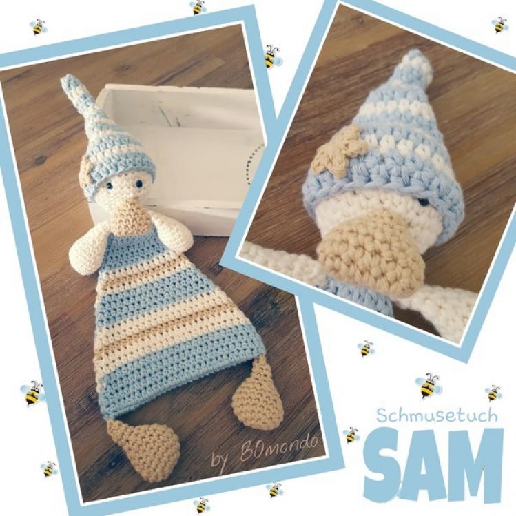 Ich erkläre dir detailliert auf 15 Seiten, wie du Sam selbst häkeln kannst. Alle Runden und auch die Maschenanzahl sind mit angegeben. Sie beinhaltet zudem eine Materialliste mit allen verwendeten Garnen und Utensilien.