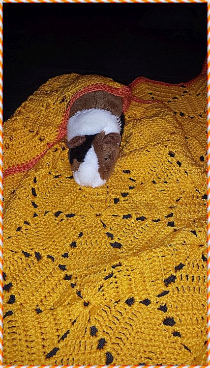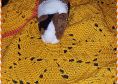 Ich habe 800 gr gelbes Acrylgarn und 70 gr orangefarbenes Acrylgarn verwendet.