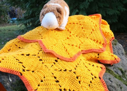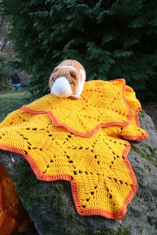 Gearbeitet wird die Decke mit einer Häkelnadel in Stärke 3 bis 3,5.