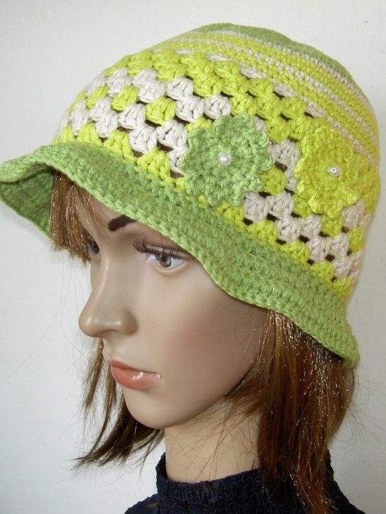Häkelanleitung Sommerhut in 3 Größen mit Blume Dieser Sommerhut kann von jedem mit Häkelgrundkenntnissen in nur wenigen Stunden gehäkelt werden. Die detaillierte Schritt-für-Schritt-Anleitung beschreibt jede zu häkelnde Runde für alle 3 Größen. Benötigt werden hierfür 100 - 150 g Baumwollgarn mit einer Lauflänge von ca. 100 m / 50 g. Hier wurde myboshi Nr. 2 verwendet. Größe I: KU ca. 48 - 50 cm Größe II: KU ca. 51 - 53 cm Größe III: KU ca. 54 - 56 cm