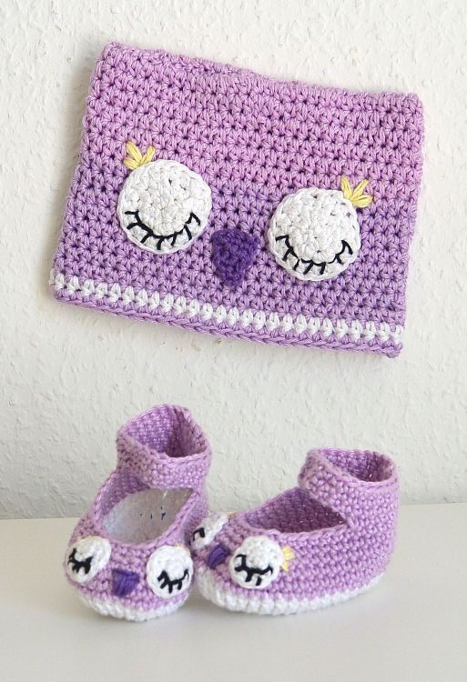 ... Für 0-12 Monate alte Babies kannst Du hiermit ein wunderschönes Eulenset häkeln...