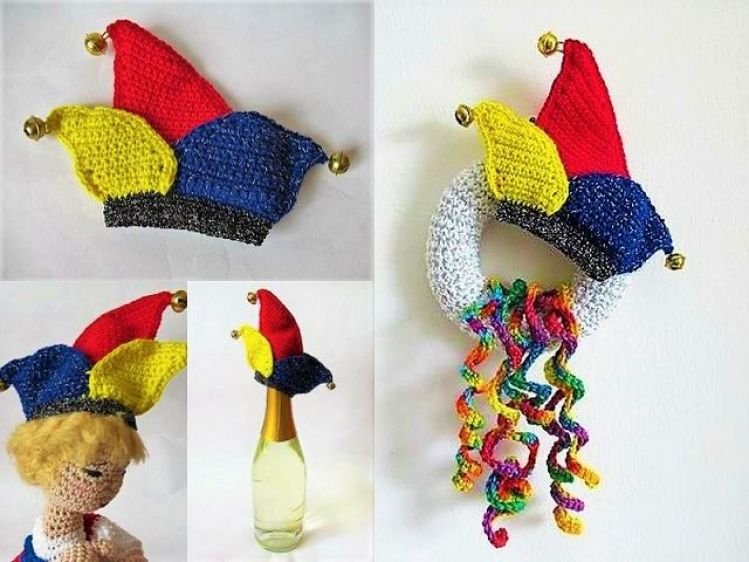 Aus wenigen Wollresten lässt sich diese bunte Narrenkappe ganz einfach nachhäkeln. Du kannst sie ganz vielseitig als Dekoration im Fasching verwenden: sei es als Hütchen für eine kleine Puppe, als Kühlschrankmagnet oder lustigen Flaschenverschluss oder du kannst einen kleinen Türkranz damit dekorieren.