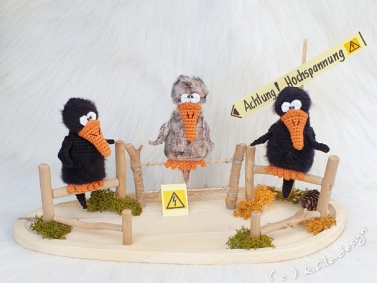 Die Raben werden mit dem angegebenen Material ungefähr 12cm hoch