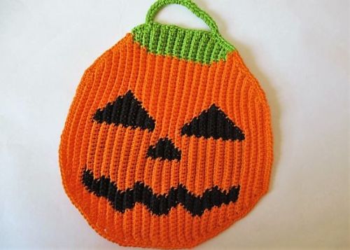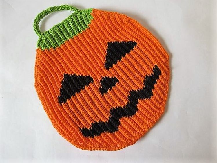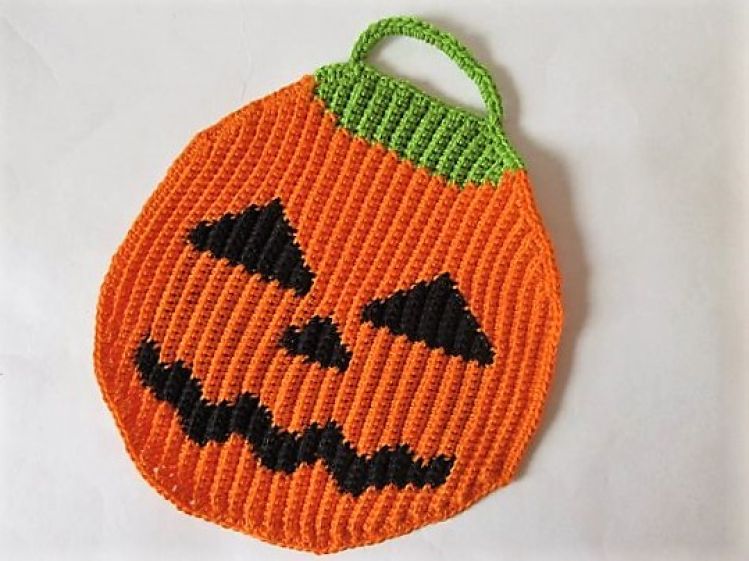 Herbstzeit ist Kürbiszeit! Dieser Topflappen mit dem Kürbisgesicht passt also wunderbar in diese Jahreszeit. Er ist nicht schwer zu häkeln. Für das eingehäkelte Muster gibt es eine Zählgraphik. Die Reihen werden aber auch einzeln beschrieben.