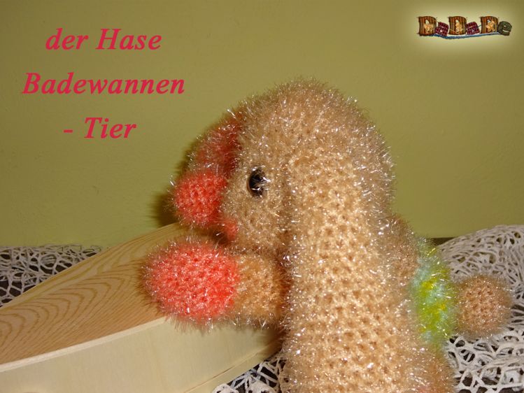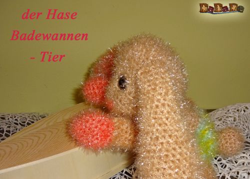 Der Bade-Hase wird ungefähr; 18cm lang x 16cm breit,