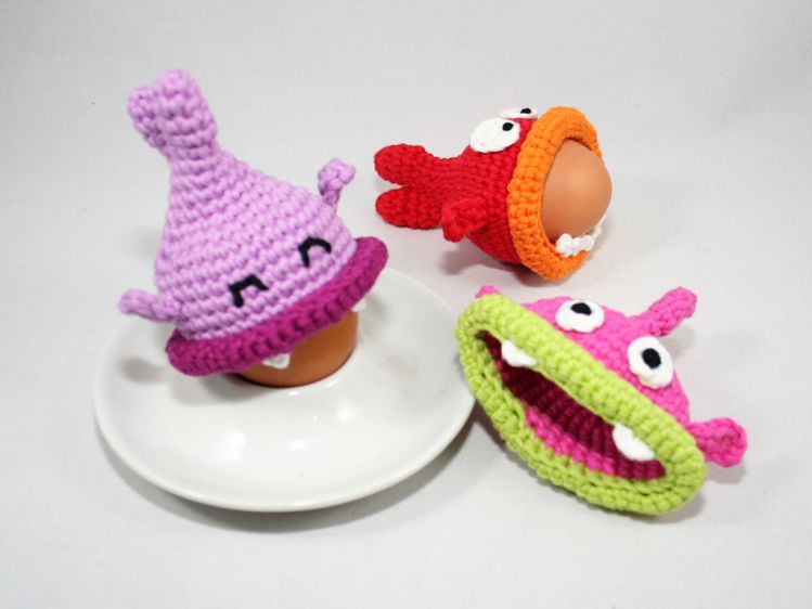 Tob' dich aus bei der Wahl der Augen (gehäkelt und/oder aufgestickt) und der Zähne (rund oder spitz). Du kannst sogar eine Zunge hinzufügen. All das wird in dieser Anleitung erklärt.