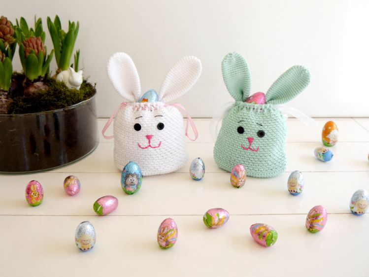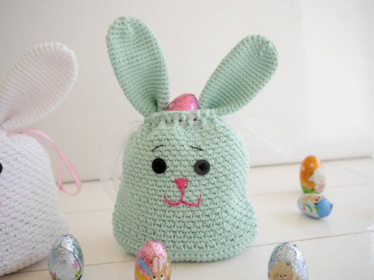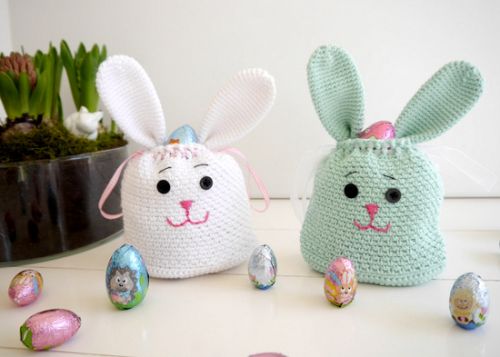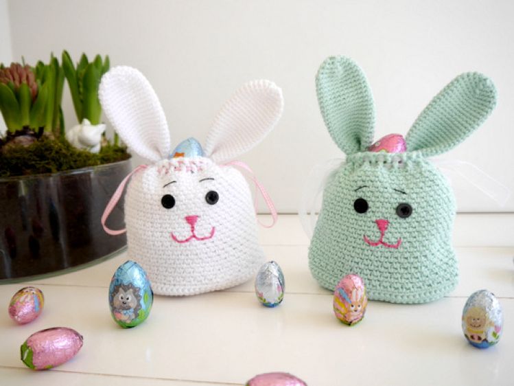 .... genau – eine Geschenktasche in Form eines Osterhasen von Dir selbst gehäkelt!!!
