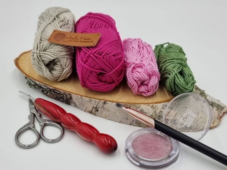 • 9 Gramm Baumwolle in Farbe B (50 g – 125 lfm) – bei mir CYCLAM (Catania 114)