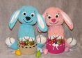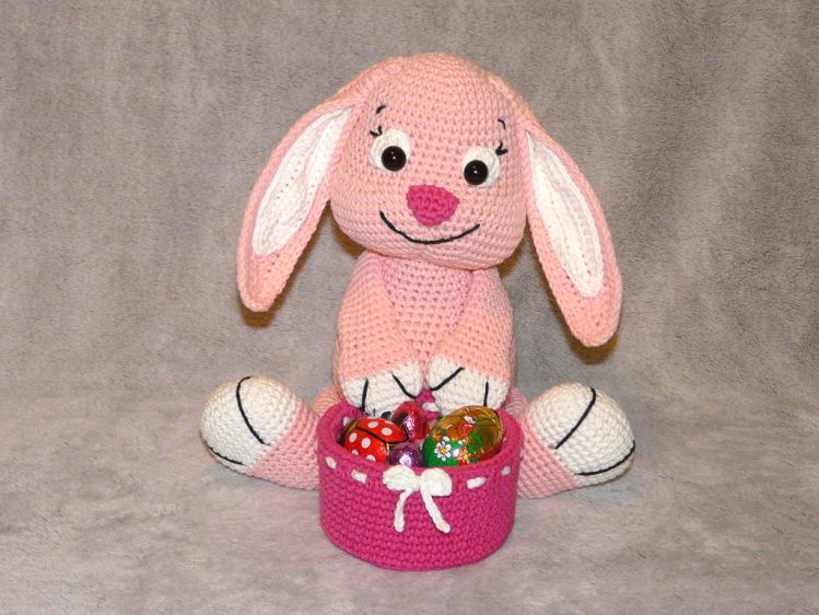 Je nach Garn und Häkelnadelstärke variiert die Größe von den Häschen mit Osterkorb.