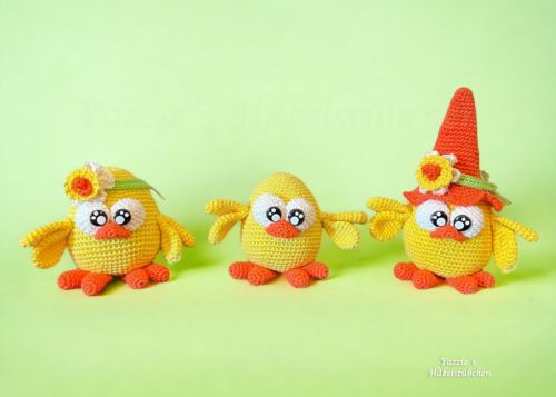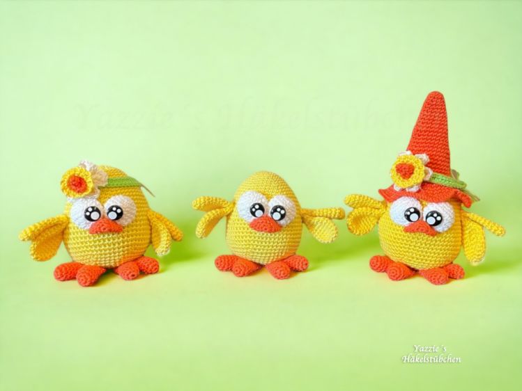 Die deutsche Originalausgabe dieser Anleitung erschien erstmals am 27.02.2022 unter dem Titel: „Osterküken - Trio“. Das Urheberrecht liegt bei Yazzie ́s Häkelstübchen - Jessica Behrendt. Dies betrifft sowohl den Text, als auch die Fotos, Illustrationen und Zeichnungen. Verkauf, Vervielfältigung, Tausch und Veröffentlichung (inkl. Übersetzungen) der Anleitung (einschließlich Veröffentlichung im Internet) sind untersagt und stellen eine Urheberrechtsverletzung dar. Die Figuren aus dieser Anleitung dürfen nur für den Eigenbedarf nachgehäkelt werden. Jede Verwendung für kommerzielle Zwecke ist ohne Genehmigung nicht erlaubt.