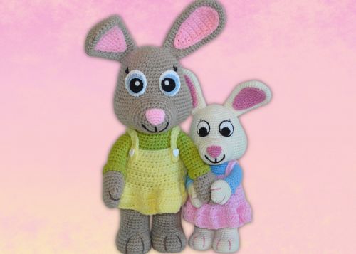 Nelly und Bonita werden nach einer Grundanleitung gehäkelt. Die Größen variieren durch die verschiedenen Wollarten und Nadelstärken.