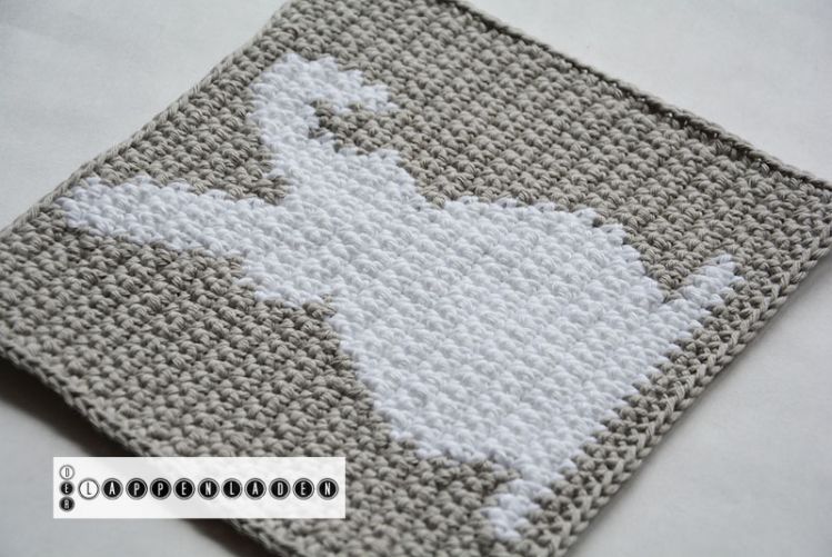 Neben der schriftlichen Anleitung für den Osterhase-Topflappen sind ein Häkelschema in Farbe und ein Häkelschema in schwarz-weiß enthalten.