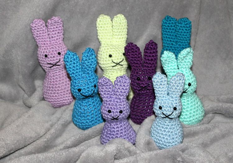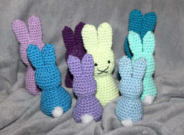 Die Häschen sind schnell hergestellt und eignen sich als Dekoration, als Mitbringsel, oder auch als Babyspielzeug, wenn man Sicherheitsaugen verwendet.