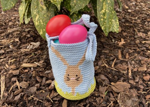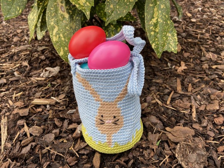 Das Osterkörbchen wird in der Tapestry-Technik gehäkelt. Diese ist mit Fotos beschrieben.