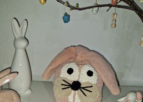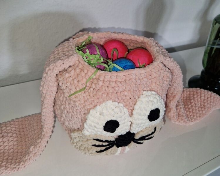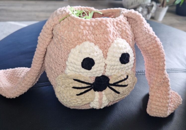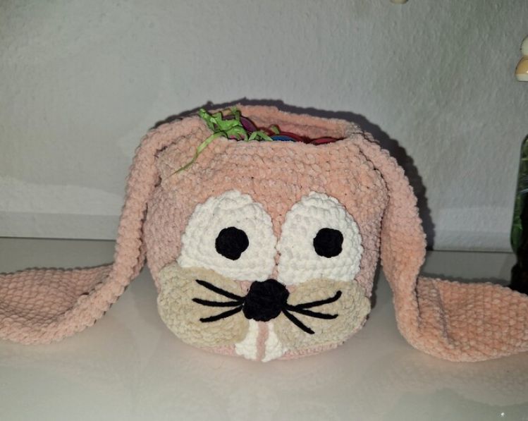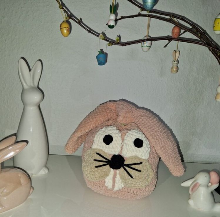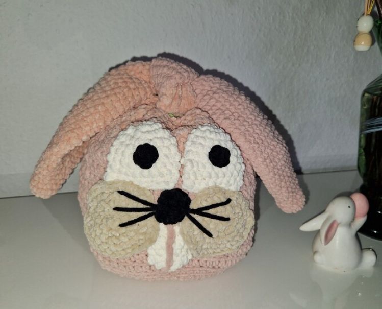 Niedliches gehäkeltes Utensilo oder Geschenkbeutel Hase oder Osterhase.