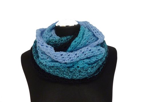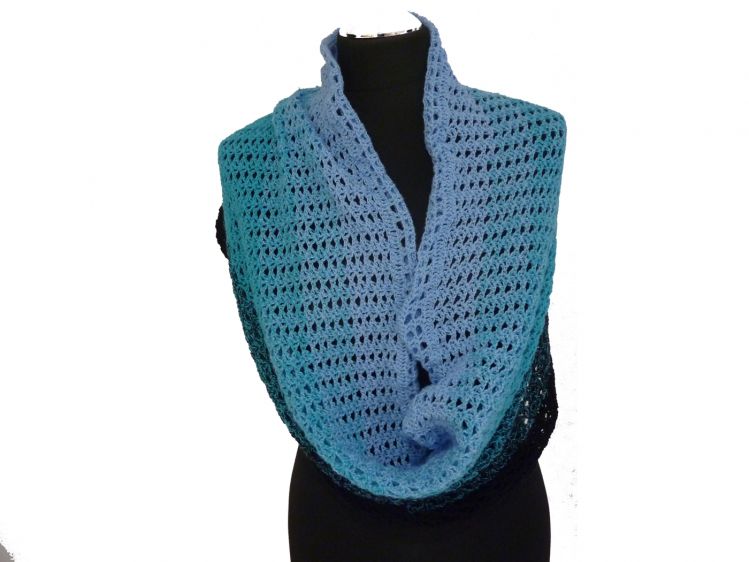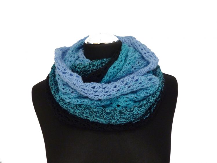 Mit seinen zwei verschiedenen Häkelmuster ist er einfach zum Nachhäkeln und passt mit seinem Umfang bequem zweimal um den Hals.