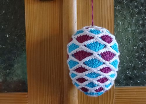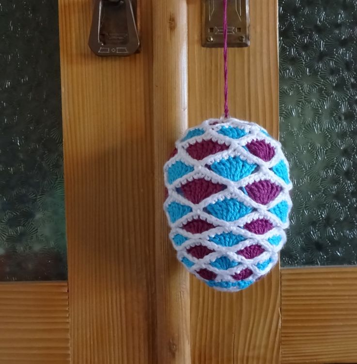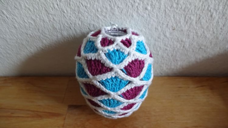Hier ist mein gehäkeltes Osterei in starken Farben.