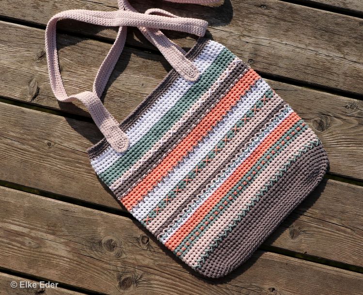 Die Tasche wird mit der Doppelmasche gearbeitet, welche eine wunderbare Basis zum Besticken bietet.