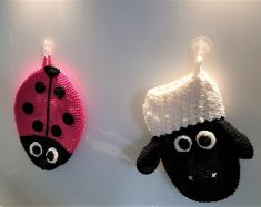 164 Set Häkelanleitung Topflappen Schaf und Marienkäfer