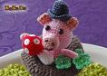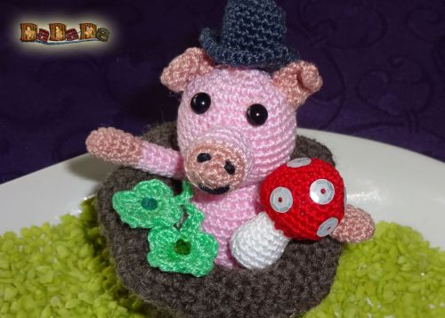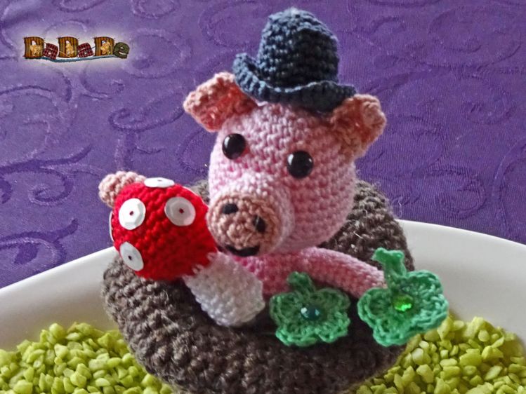 das Schwein im Zylinder, Dekoration für Silvester - gehäkelt