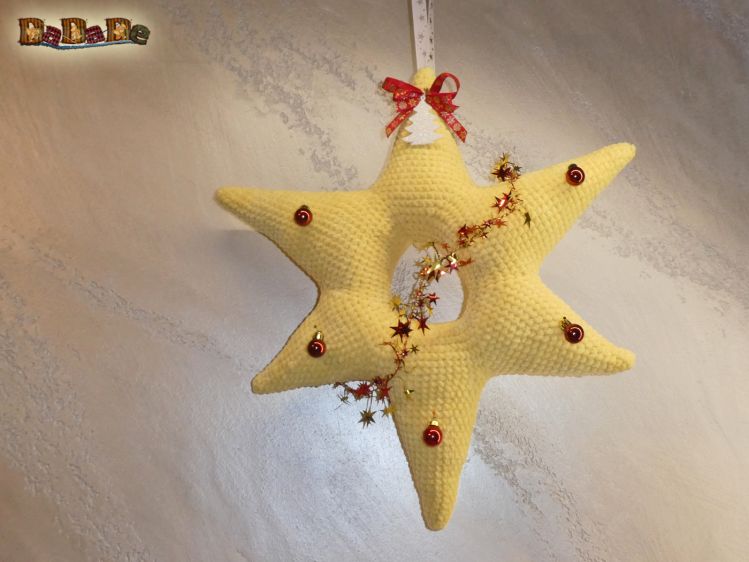 Sie kaufen hier die Anleitung für diesen tollen Kranz in Form eines Sterns, er ist gehäkelt.