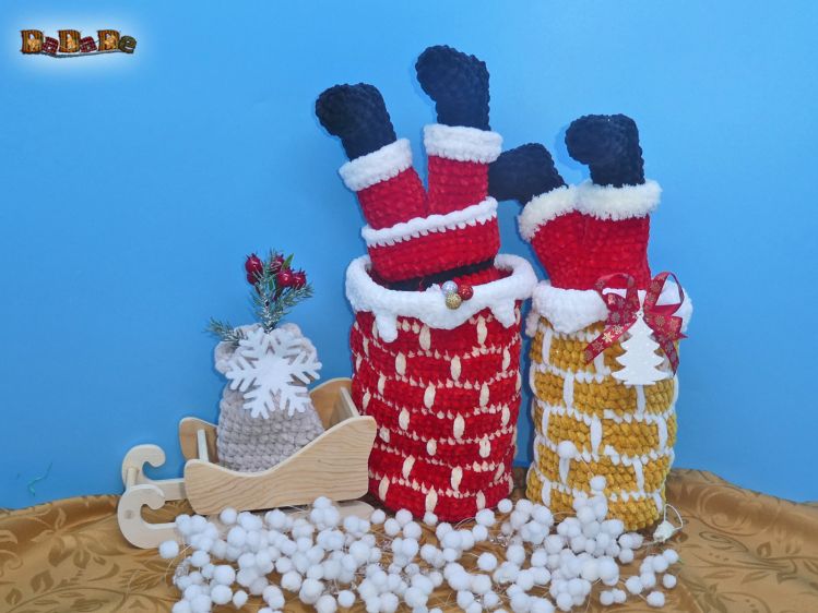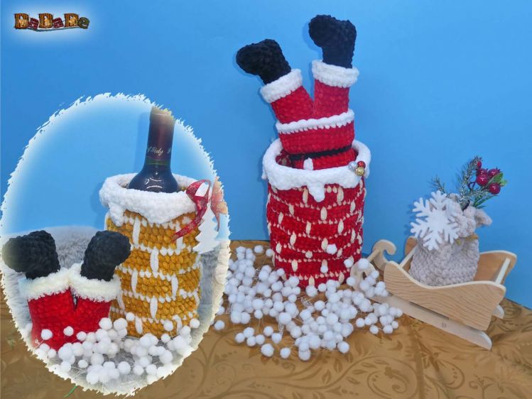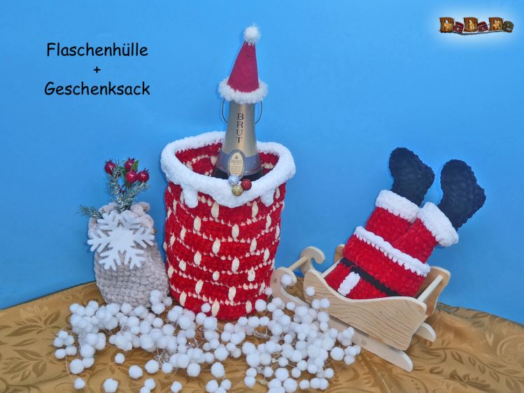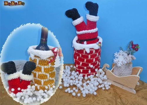 Hier kauft man die Häkelanleitung für den tollen Kamin mit dem Weihnachtsmann, der weihnachtliche Flaschenüberzug nicht nur für deine Weinflasche.