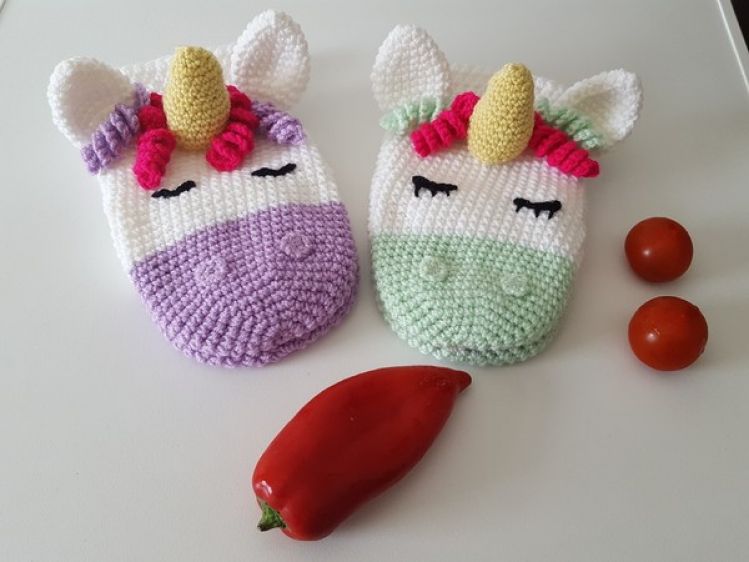 Häkelanleitung Handpuppe oder Topflappen Einhorn