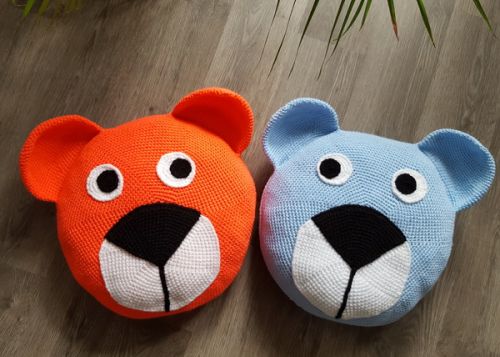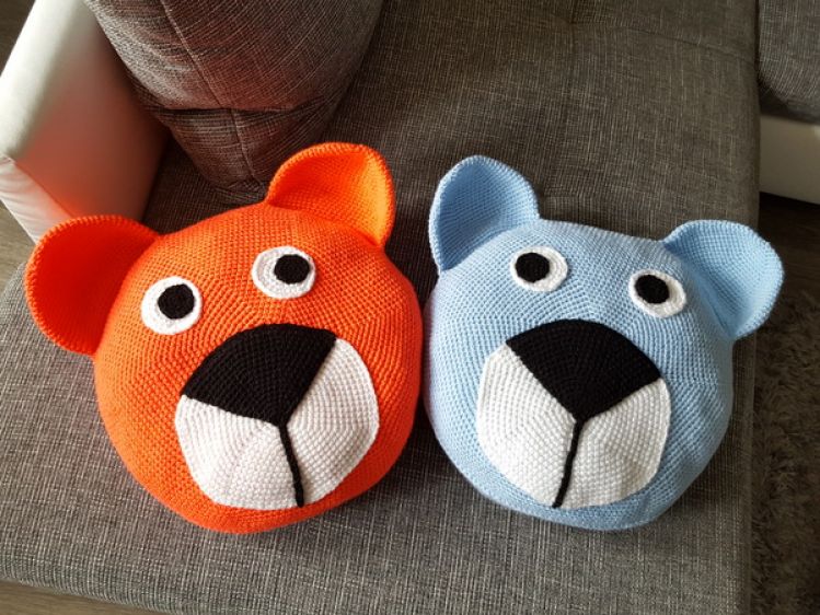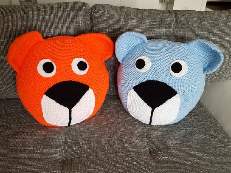 Häkelanleitung für ein Kissen Teddy Bär Bruno und Brunhilde.
