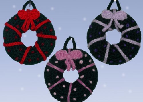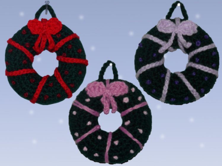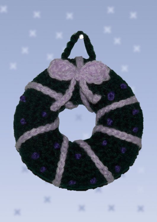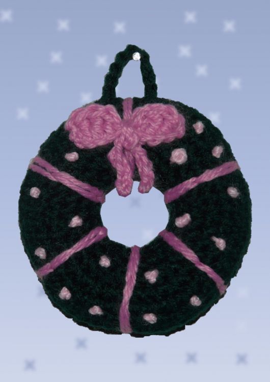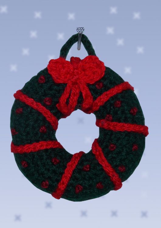 Hier gibt es eine Häkelanleitung für einen Miniatur Weihnachtskranz.