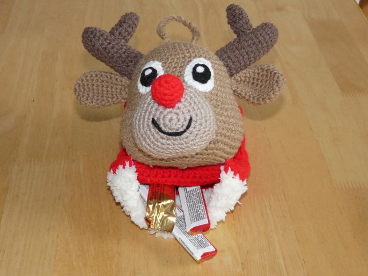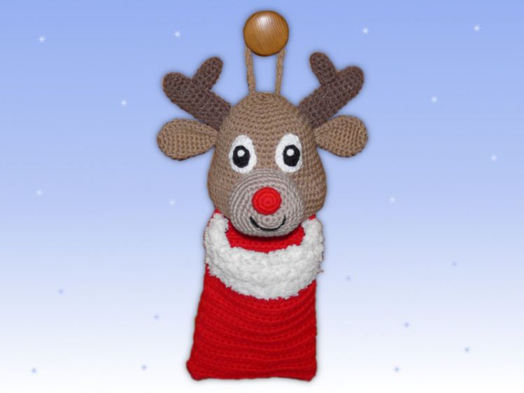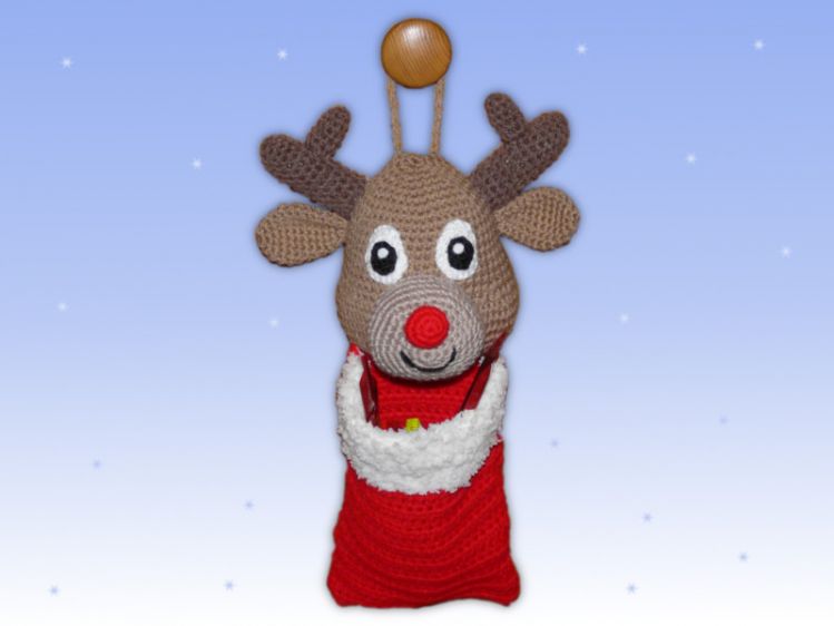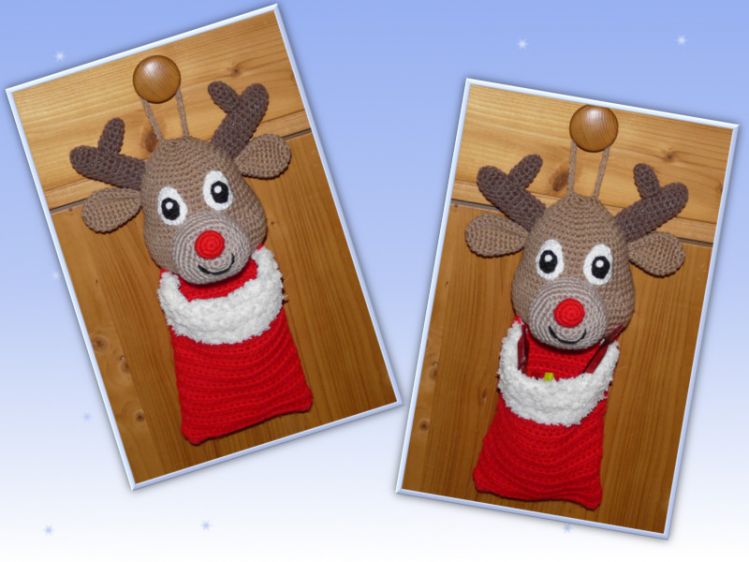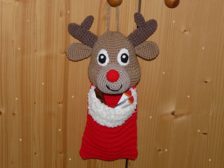 Je nach Garn- und Häkelnadelstärke variiert die Größe vom Rentier Nikolausbeutel.